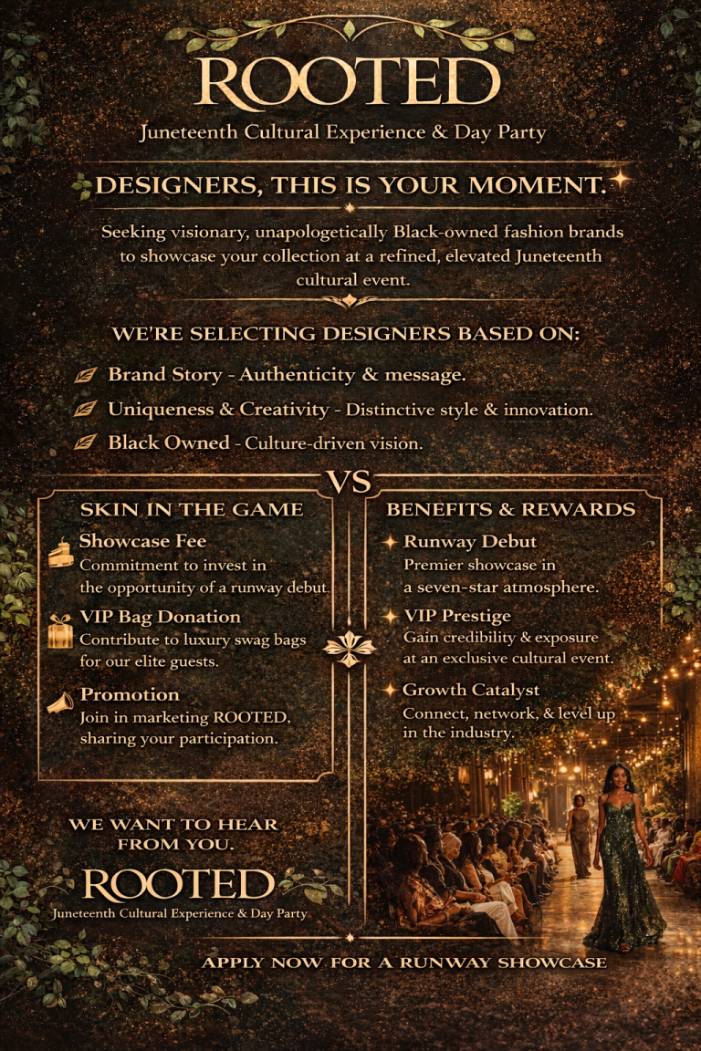 We are currently seeking sponsors, vendors, designers, and models who are passionate about culture, creativity, and community engagement. This is an opportunity to showcase your brand, products, talent, and artistry in front of an audience that values culture, innovation, and empowerment.
